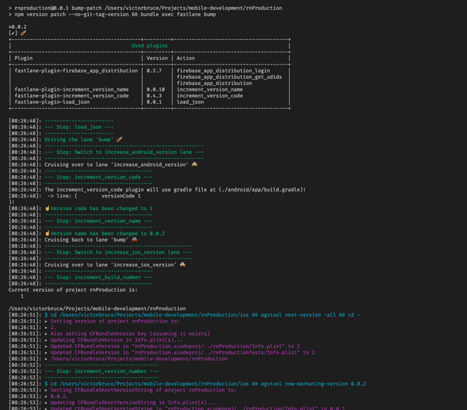 npm versionto handle the Javascript package version. - Use fastlane to update the Android and iOS sides by getting the version number set in