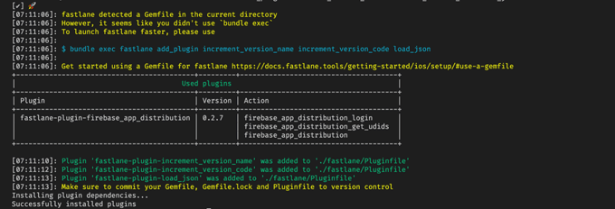 💡Pro Tip: In case you find this error Plugin ‘firebase_app_distribution’ was not properly loaded update your plugin by running the command bundle exec fastlane update_plugins