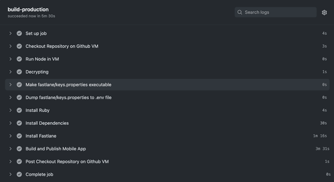 Now, we are no longer running Fastlane on our local machine like we did in part 3 but rather in a Virtual Machine on Github. And this virtual machine has no access to these secrets we have kept away from our repository on Github.