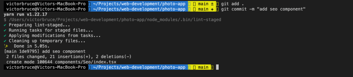 yarn lint-stagedThe above command will run the lint-staged script in the package.json file when committing which ensures that code is formatted according to the rules defined and that the code is free from any linting issues.